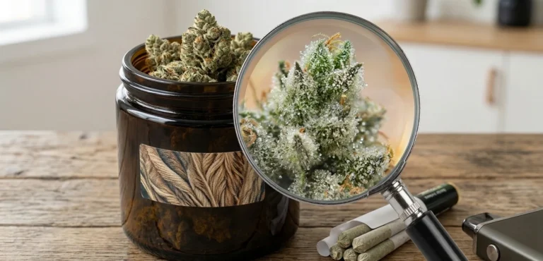 Learn how to tell if cannabis is fresh by checking harvest date, THC loss, terpene aroma, trichomes, moisture balance, storage, and mold signs.